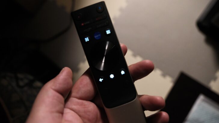 Bluetoothリモコンが付属している。プロジェクターのリモコンって動作がワンテンポ遅れる印象が強いのだが、本製品のリモコンはサクサクと操作ができる。特に遅延を感じることもない。